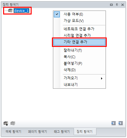 1. 기타 연결 추가(장치 탐색기 > 장치 선택)