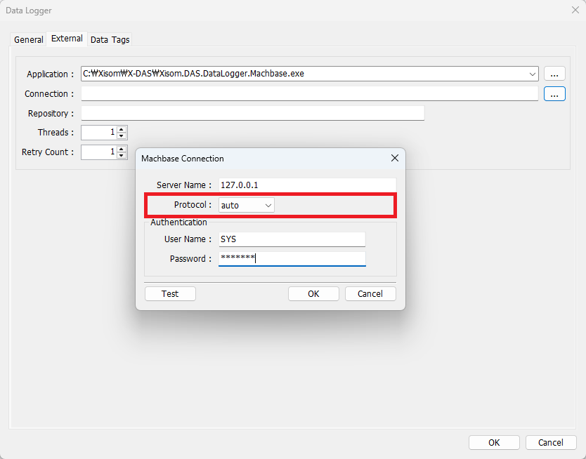 Machbase 버전에 따라 적절한 Protocol 값을 선택하시기 바랍니다.