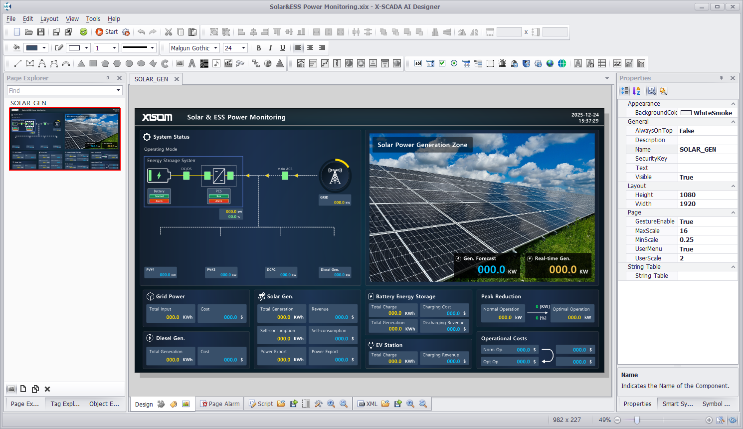 X-SCADA AI를 이용해 만든 태양광 및 ESS 전력 모니터링 시스템(Solar & ESS Power Monitoring System)을 소개합니다.